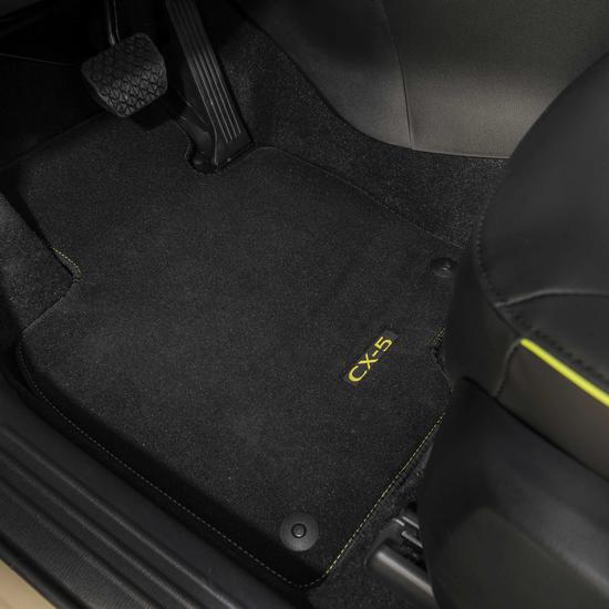Das neue Mazda CX-5 Sondermodell Newground ist für praktisch orientierte Kunden und verfügt über einen silbernen optischen Unterfahrschutz an Front und Heck, silberne Seitenschwellerleisten, schwarz lackierte Außenspiegel, grüne Akzente am Kühlergrill sowie silbern-schwarz geschliffene Leichtmetallfelgen im 19-Zoll-Format.