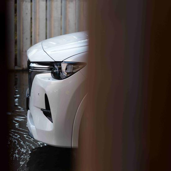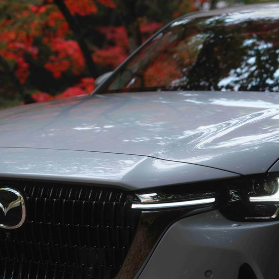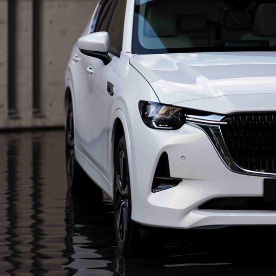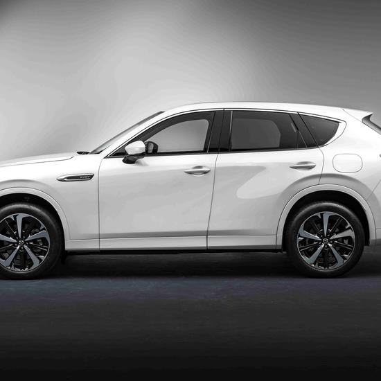 Im Unterschied zu einer herkömmlichen weißen Perllackierung besitzt Rhodium White, dank einer noch dichteren Partikelstruktur, einen harten Glanz, der die kraftvolle und anmutige Form des Mazda CX-60 betont.