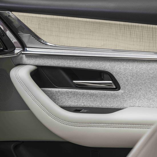 Innen verbinden sich unterschiedliche Materialien und Oberflächen, darunter Ahornholz, Nappaleder, japanische Textilien, Chromakzente und besonders detailreiche Nähte an der Instrumententafel, zu einem einzigartigen, japanisch geprägten Ambiente.
