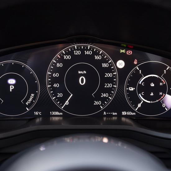Anschließend werden Sitz, Lenkrad, Head-up Display und Außenspiegel automatisch angepasst, um eine aus Sicht von Mazda optimale Fahrposition einzunehmen.