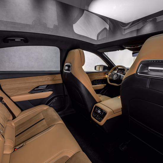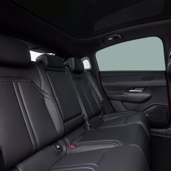 und Schönheit des offenen Raums betont. Während die Passagiere auf den vorderen und hinteren Plätzen in den Genuss großzügiger Beinfreiheit kommt, lässt das Panorama-Glasdach natürliches Licht in