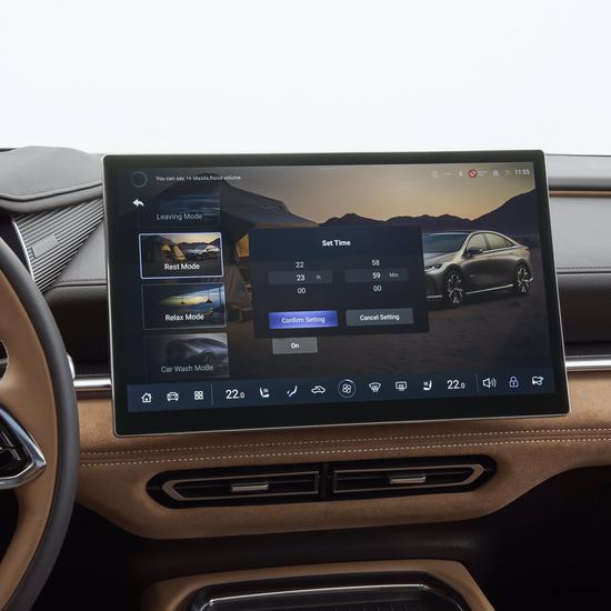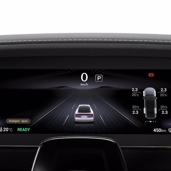 14,6-Zoll-Touchscreen, ein digitales 10,25-Zoll-Kombiinstrument mit großen, digitalen Instrumentenanzeigen sowie ein 50-Zoll großes Augmented-Reality-Head-Up-Display, das wichtige Informationen