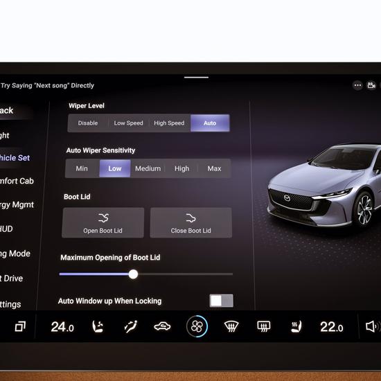 Das intelligente Cockpit des Mazda6e ist auf den Fahrer ausgerichtet und umfasst einen anpassbaren